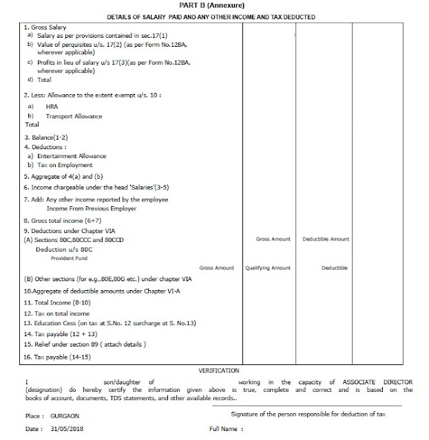 It contains the personal details of the employee such as address and name, employer's name and address, both PAN (Permanent Account Number) and Employer's Tax Exemption Account Number (TN) Part A with your current employer at the time of employment and TDS (withholding tax on your income) Taken) has details.