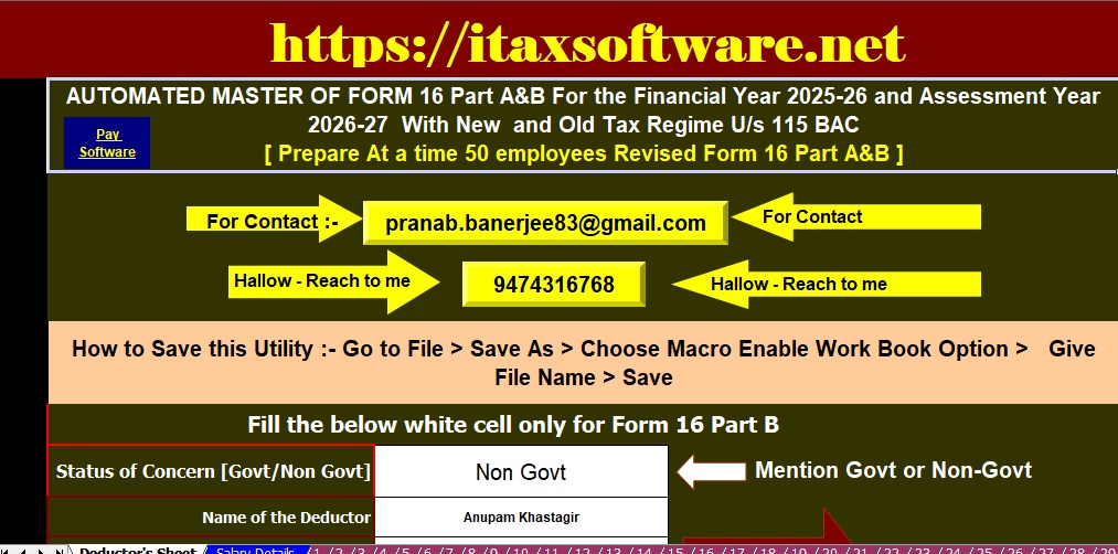 Download Automatic Form 16 Part A and B in Excel for Salaried Employees for FY 2025-26 & AY 2026-27[/caption]Key Features of Automated Income Tax Master of Form 16 Part B in Excel for FY 2025-26